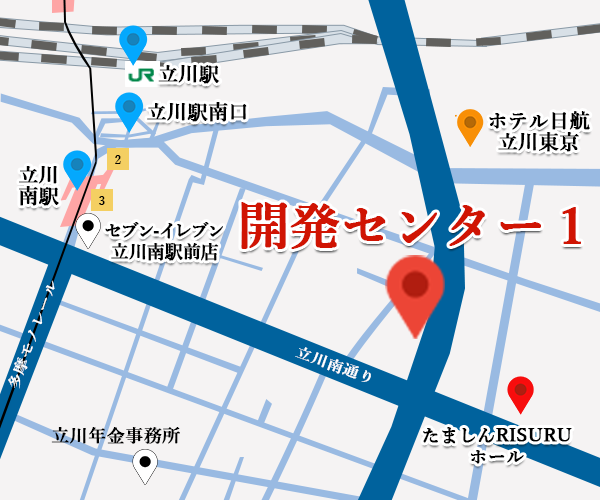 | 開発センター1 | 〒190-0022 東京都立川市錦町1丁目8番7号 立川錦町ビル8階 アクセス TEL 042-523-1177(代表) FAX 042-523-7070 |